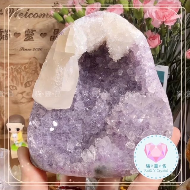 雪花晶牙 仙氣紫晶鎮 共生方解石 1kg