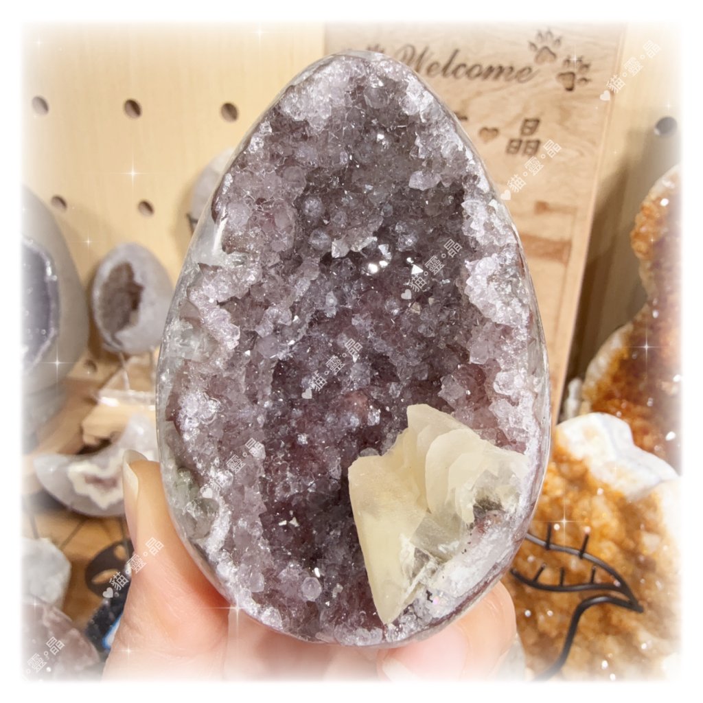 半拋光 彩晶恐龍蛋 共生方解石 (約9cm)
