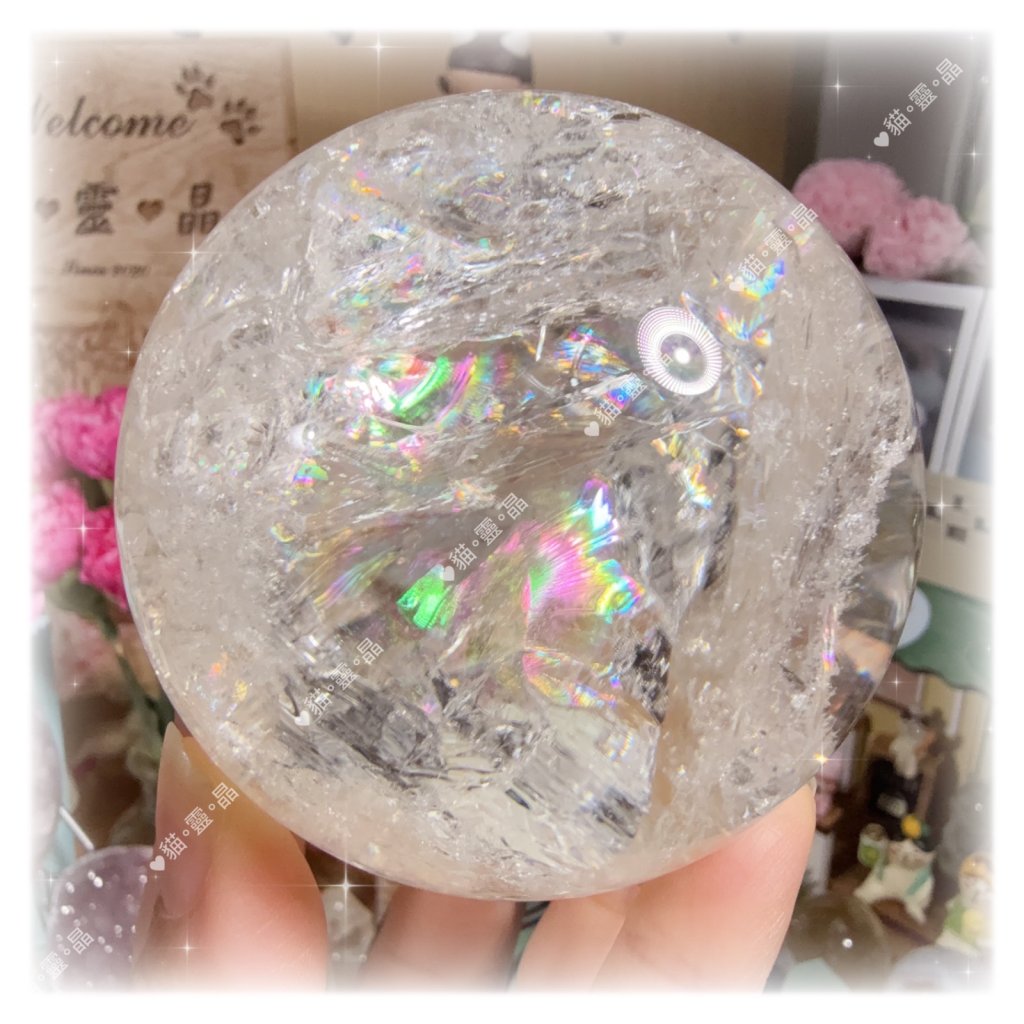 彩虹 冰透亮 白水晶球 7.4cm