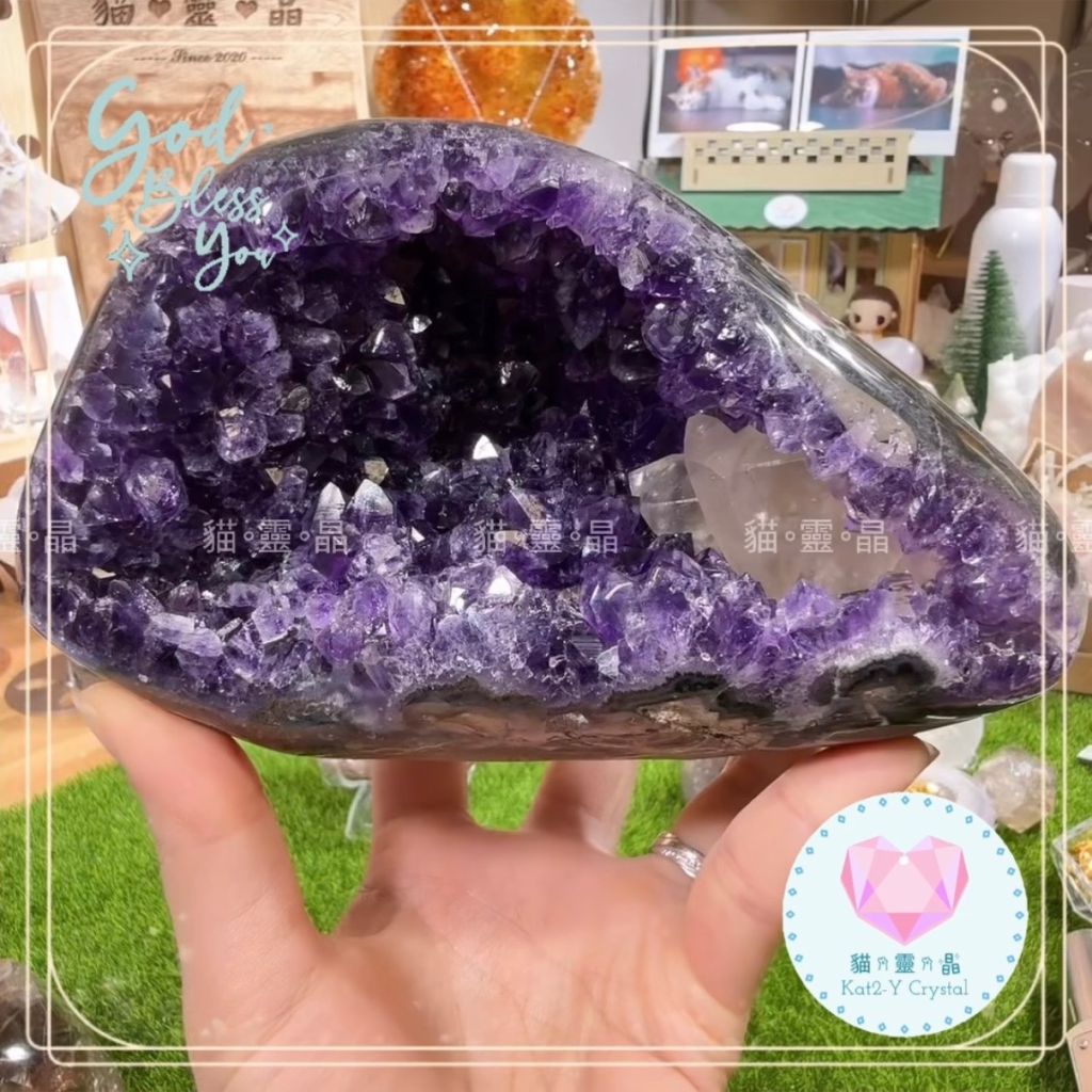 半拋光 深紫大牙 紫晶錢袋子 共生方解石 1kg